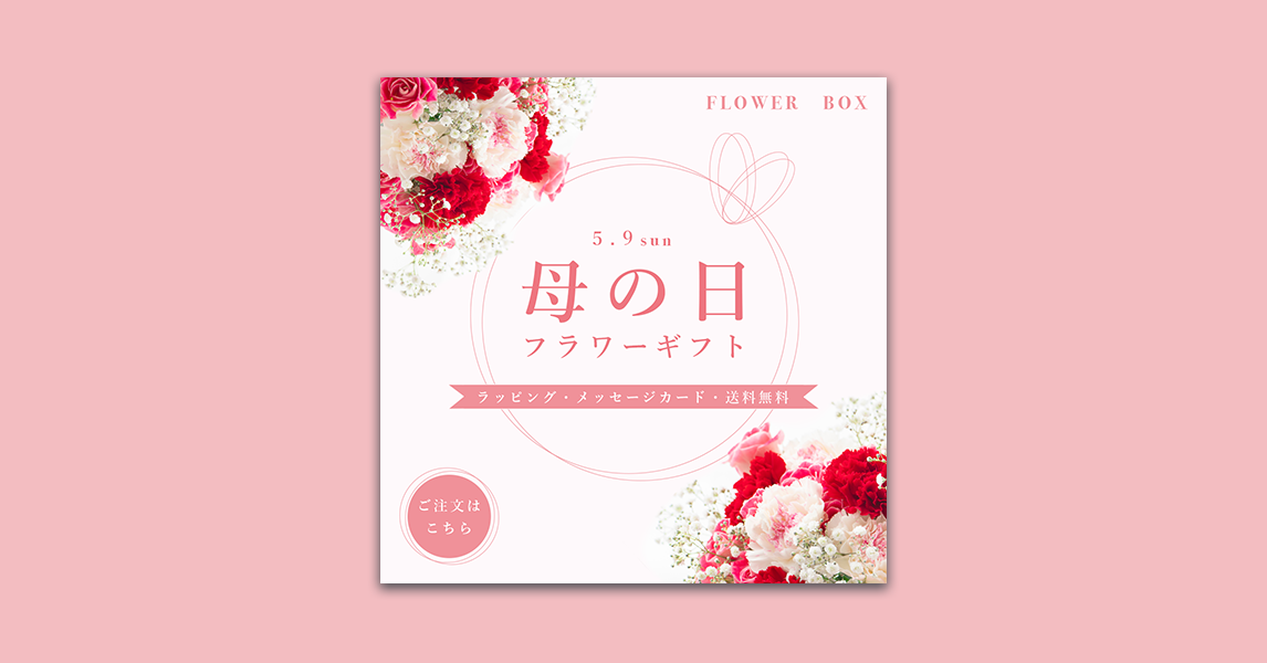 ・シーン訴求になるので、利用シーンをしっかり目立たせるために「母の日」を大きく中央に配置しました。