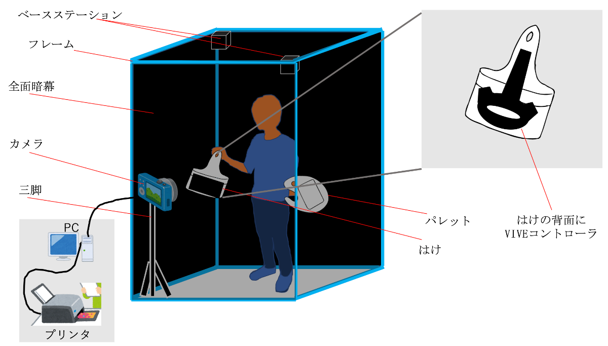 もし、ペンキを塗るように、はけをさっと一振りするだけで立体的かつ繊細な絵が描ける、魔法のような道具があったら...。私たちはライトペインティングと VR システムを用いてこれを解決する。
