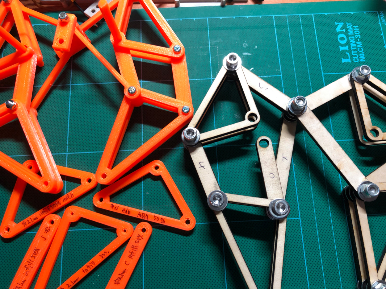 2次元的な製作の限界を感じ、3Dprinterを購入した。それと同時に3次元cadを使い始め、第一mockの部品の互換品を製作し始めた。特に脚と脚の部品が3Dprinterだとかなり簡単に作ることができた。