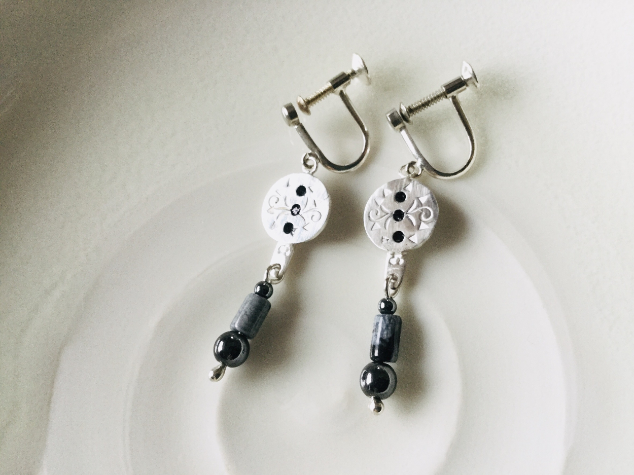 上下:ヘマタイト/2mm ・5mm 両穴球体