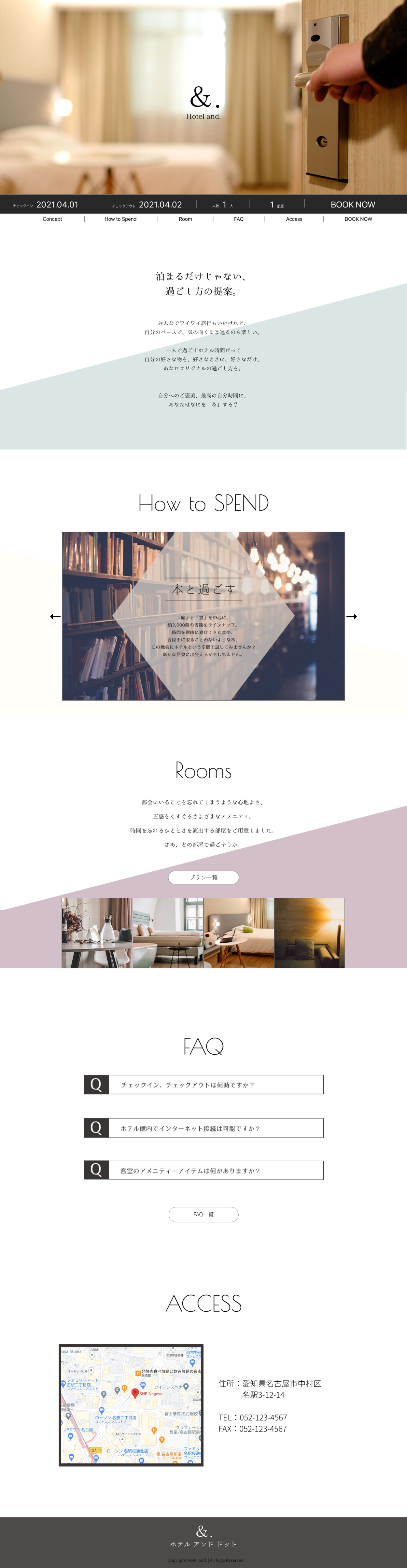 コンセプト、カフェ、本、お部屋、FAQ、アクセス、予約