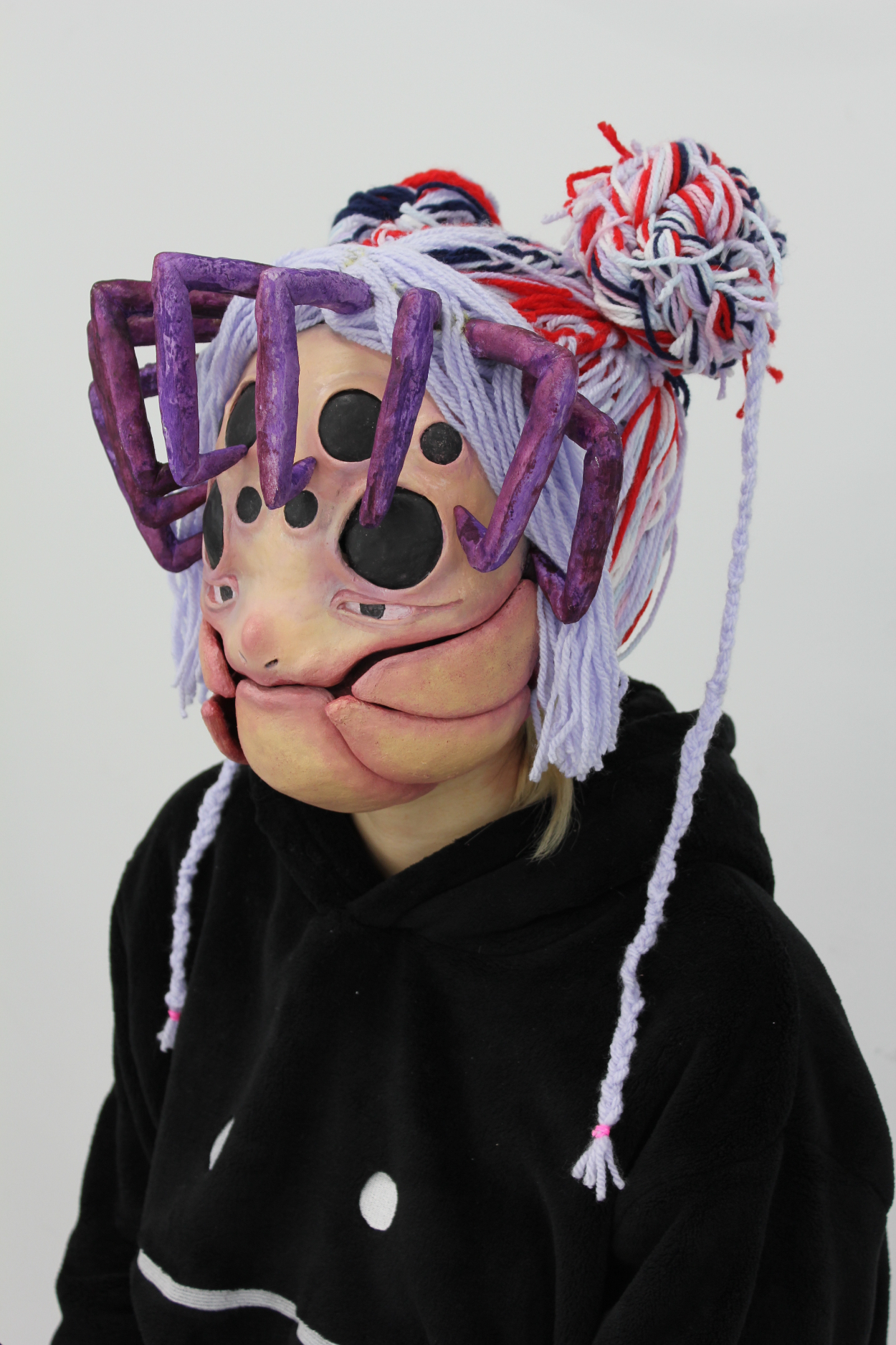 ラテマスク)蜘蛛面 窪田理紗 東京ビジュアルアーツ専門 OVERVIEW ラテックスを使用して蜘蛛モチーフのマスクを作りました YEAR 2020 口のパーツを個別で制作したので型取りに時間がかかりスケジュール管理が難しかったです。イメージ通りに作品を仕上げるため原型の時点でそれぞれの目の位置に気を付けました