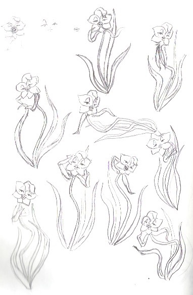 Nancy Narcissus 和田 花 OVERVIEW スイセン(Narcissus)の花をモデルとしてキャラクターをデザインした。 YEAR 2020 スイセンの花をスケッチし、それを元に森にすむナンシーというキャラクターを作成。スケッチスイセンの水彩スケッチ