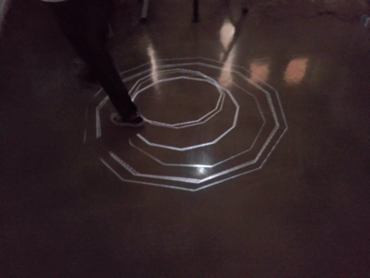 ↓TouchDesignerと測域センサーを使用し、センサーの範囲内で動作をすると検知した場所に映像を映し出すインタラクティブなプロジェクションマッピングをした様子