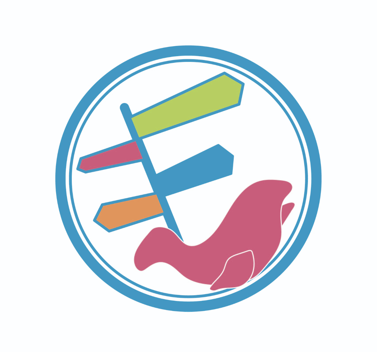 ・道標・・・ここで行き先ごとに違う虹色カラーを使って、多様な行き先・目的地・体験があることを示唆。素敵な事がありそうな、ワクワク・ポジティブなイメージを。