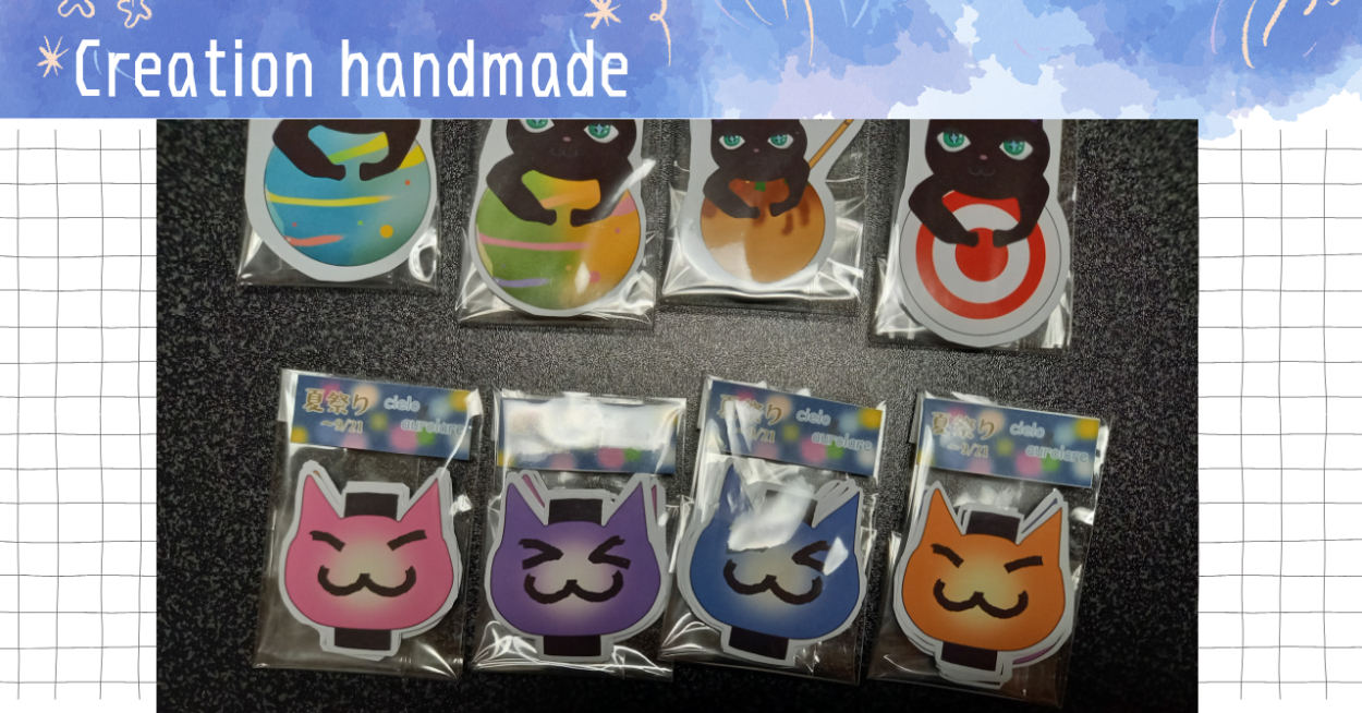 ハンドメイド作品 時雨賢治 僕に出来る事だけをする!出来ない人の助けになりたい OVERVIEW 過去のハンドメイド作品 YEAR 2024 夏祭りと題して期間限定で出しておりました2024年に制作した作品。写真に上げたものの一部は売れました。