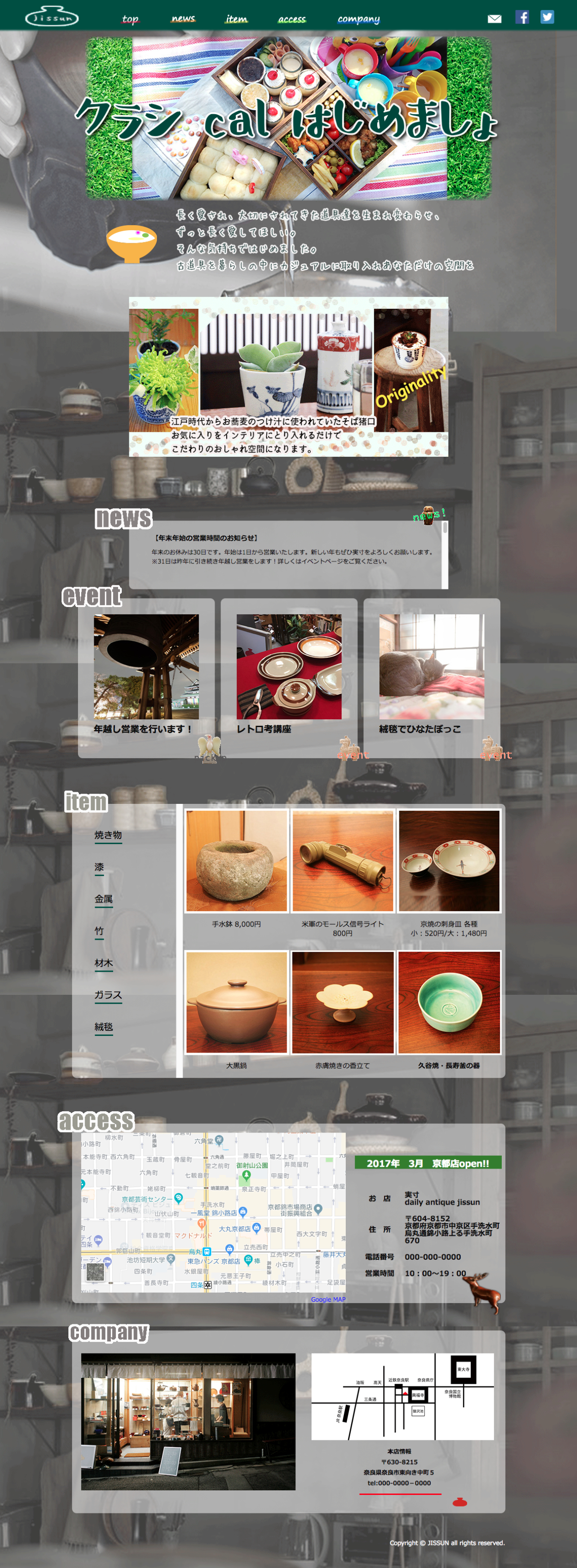 職業訓練グループ課題_奈良に実在する古道具雑貨店「jissun」のサイトリニューアル