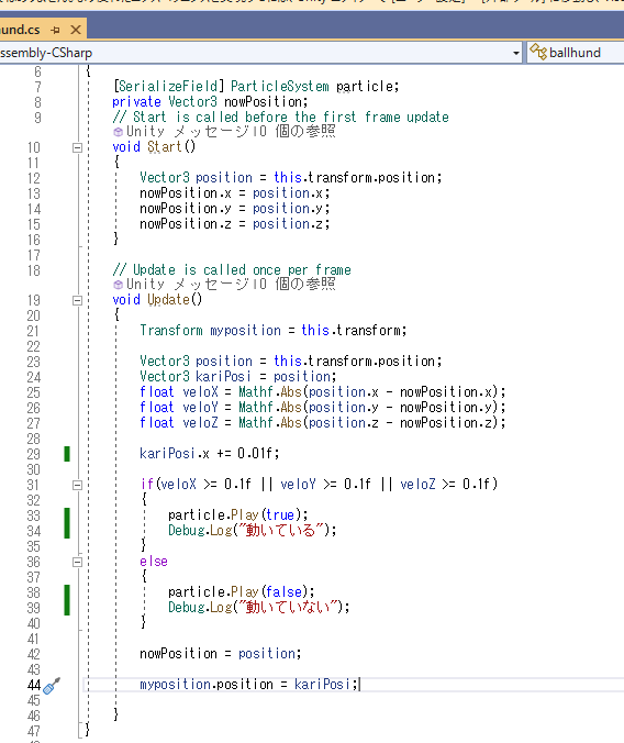 というわけで動いているときのみパーティクルを放出するようにするスクリプトを作成しようということになりました