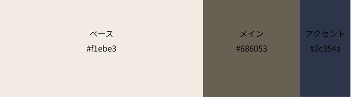 ベースカラーにはベージュを使用しています。メイン、アクセントカラーが落ち着いた暗い色のため、ベースカラーで明るさを出しています。