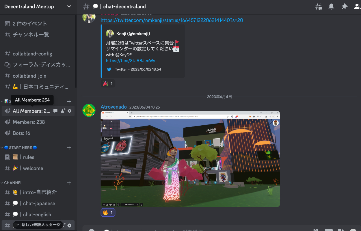 2021年から開設。DiscordとTwitterでの交流がメイン、メタバースクリエイターも多数参加。毎週月曜22時からTwitterスペースも開催。