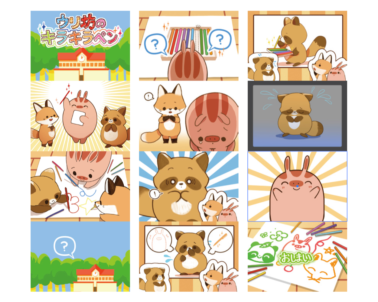 『ウリ坊のキラキラペン』アート担当 錆缶 イラストレーター OVERVIEW 子供向けドラマCD『ウリ坊のキラキラペン』(Zelfstandig)のアートを担当しました。 ジャケットデザイン、ロゴデザイン、キャラデザインなど多角的に担当させていただいております。 YEAR 2019 紙芝居イラストキャラデザイン