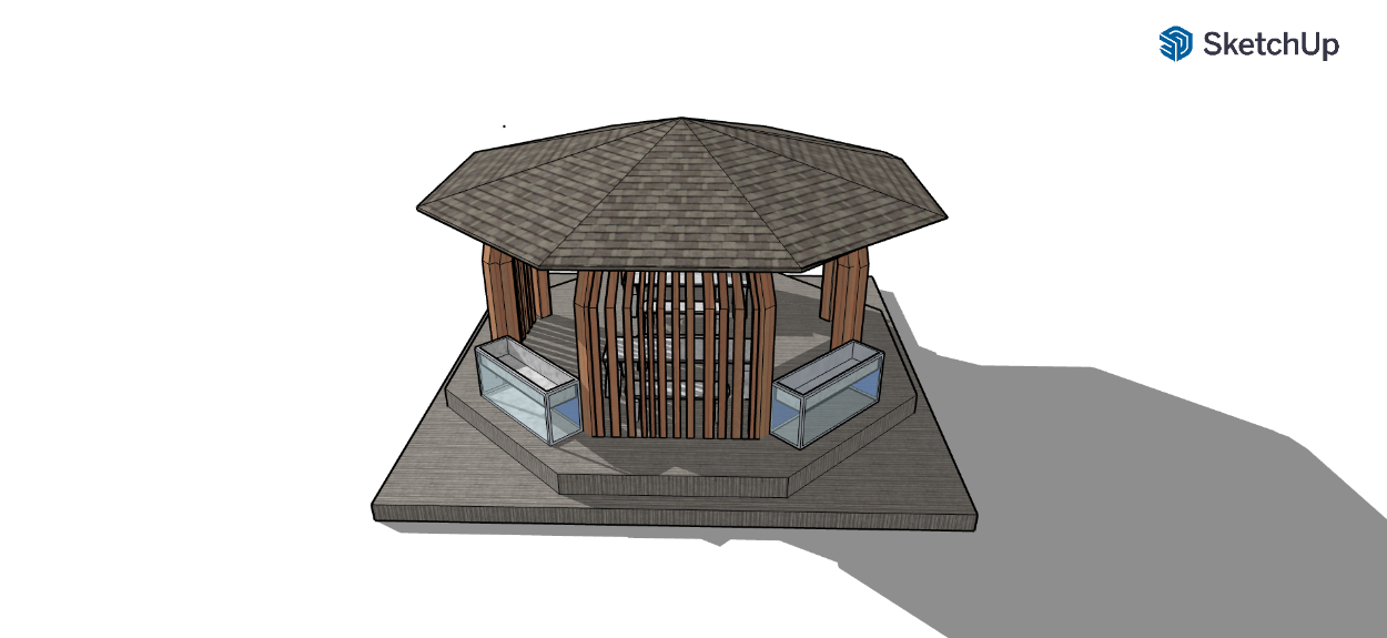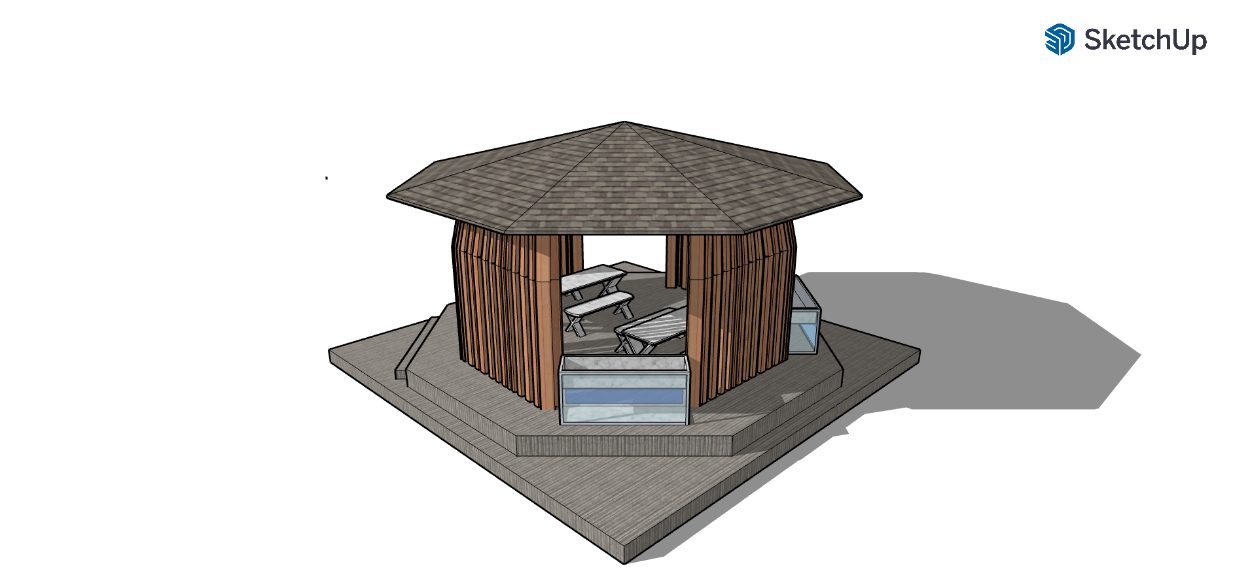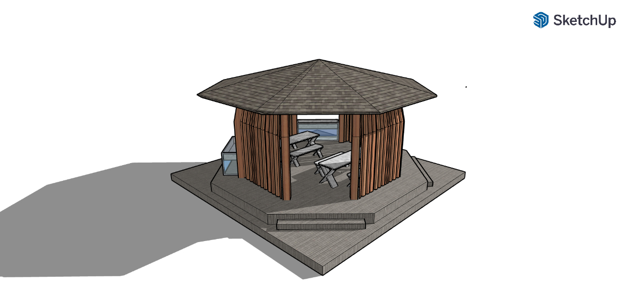 初めてのプロジェクトだったので、ミスが多かったかもしれませんが、『デザインコンセプト』というものを学ぶ貴重な経験でした。『Picnic Shelter(ピクニックシェルター)』というテーマで、『人に影を提供する』という機能と、『花』をイメージして花瓶のような形をデザインしました。実際に現地へ行き、自分で方向を確認したり、寸法を測ったりしながら制作を進めました。