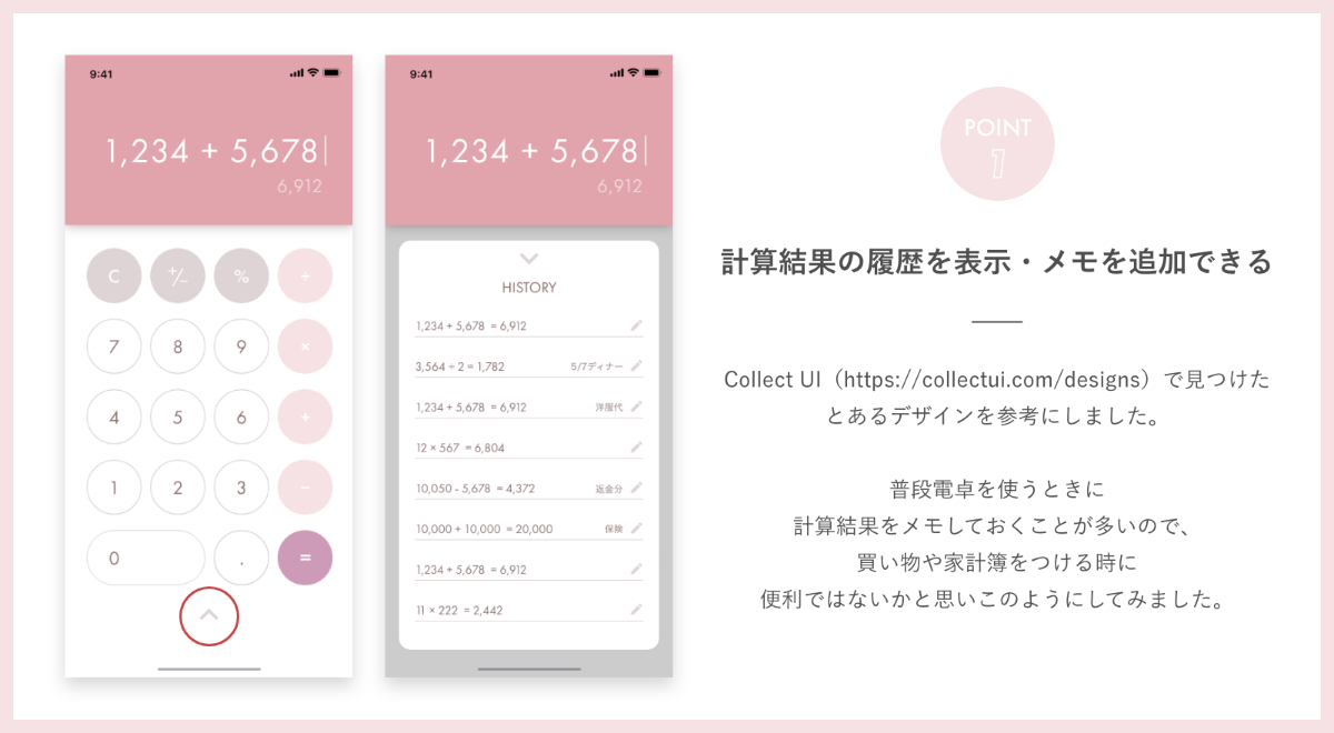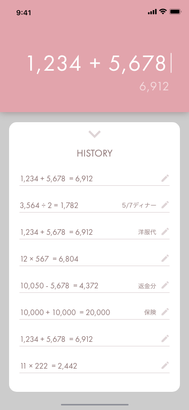 コンセプト:買い物や家計簿をつける時にさっと使える電卓アプリ