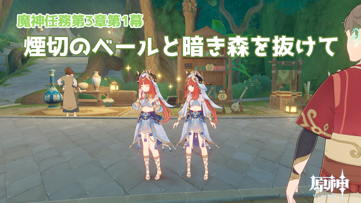 舞台が草神のいる知恵の国のため、配色はテーマカラーの緑を使用し、文字は背景が暗めなので白にしコントラストを引き立たせました。