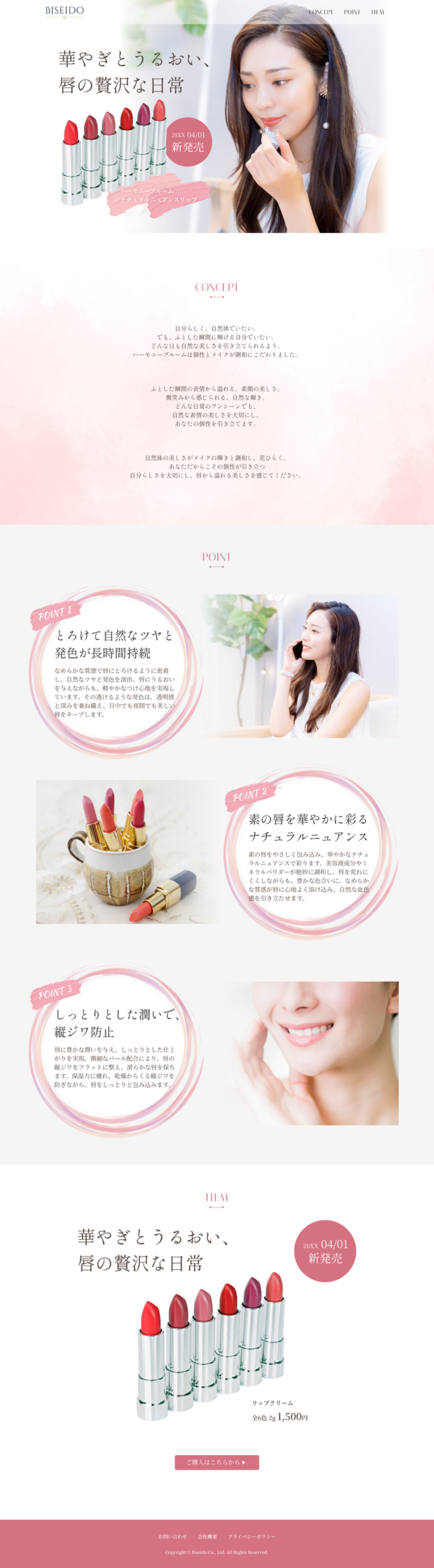 Figma を使ってリップクリームのLPサイトのデザイン作成をしました。