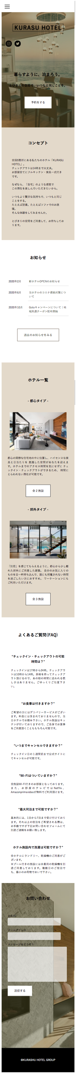 コンセプト/ホテルからのお知らせ/部屋一覧/よくある質問/お問い合わせ