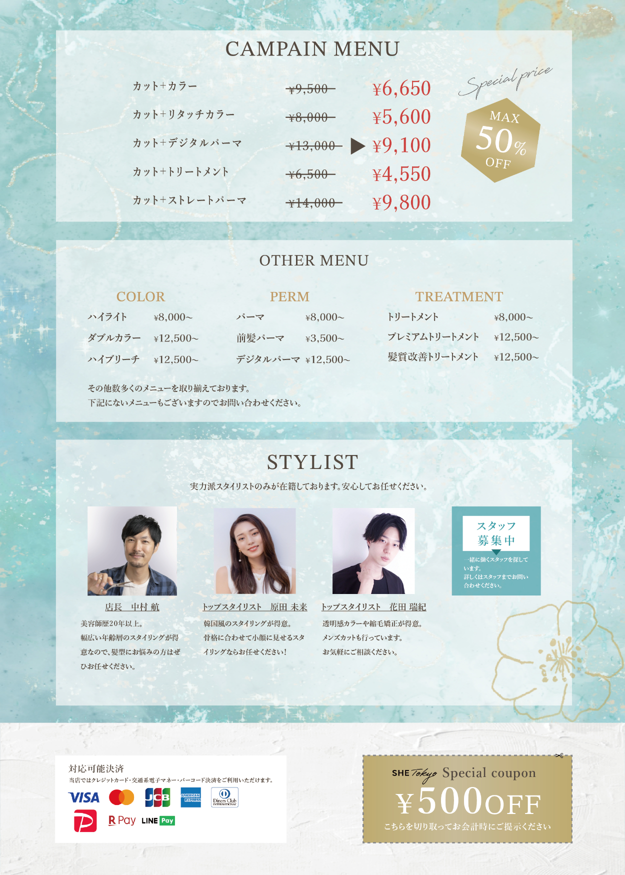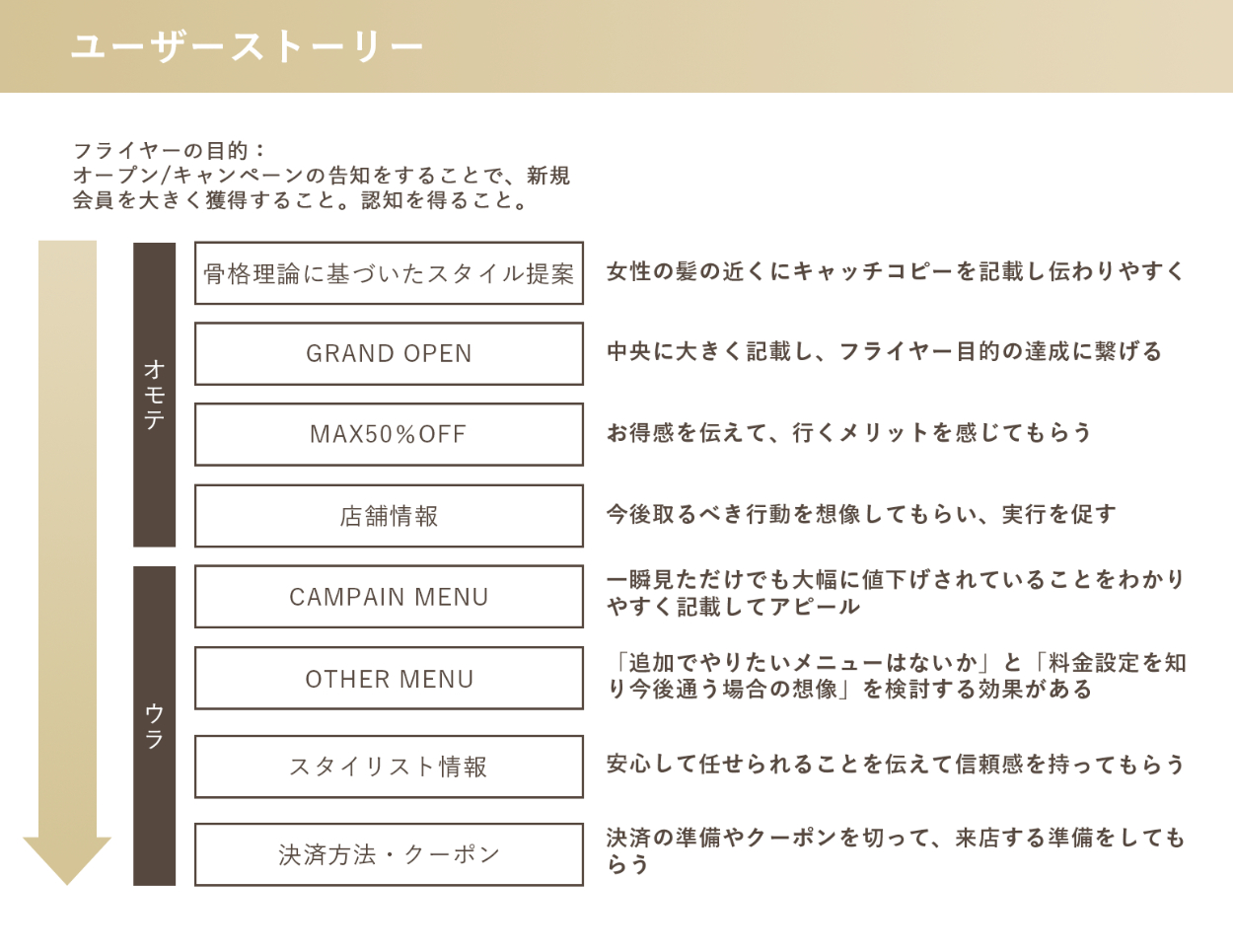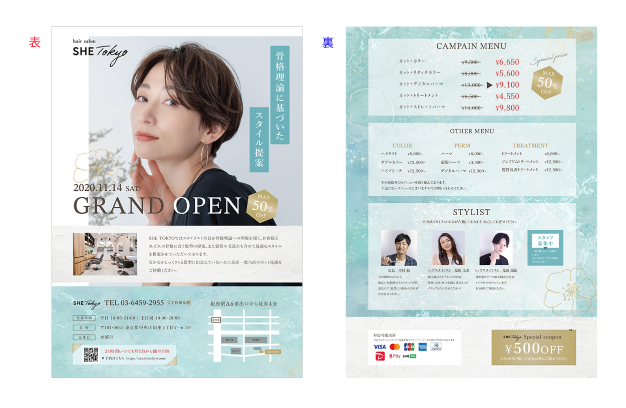 美容室の特徴が簡潔に言うと、“料金は高めだが実力あるプロのスタイリストにやってもらえる”というところで、ネガティブイメージである“料金設定が高い”という部分をキャンペーンで大幅値下げするという大きなメリットがきちんと伝われば来客数を増やすことができると考え、きちんと伝わる情報設計になるように気をつけました。