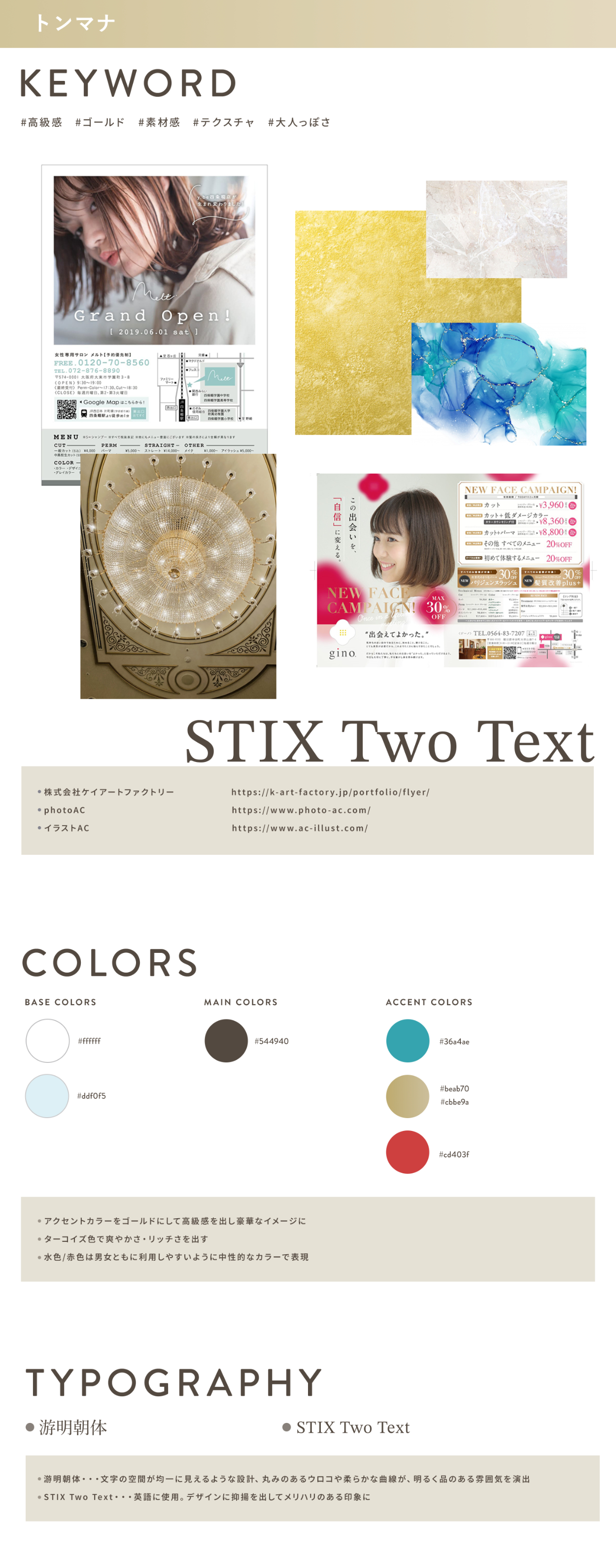 銀座に拠点を構える、骨格理論に基づいたスタイル提案が売りの美容室。オーダー通りに再現するだけでなく、一人ひとりの骨格や髪質に合わせて最大限に合うようにカスタマイズし仕上げることを得意としている。スタイリストは全員、有名店で腕を磨いた実力派。