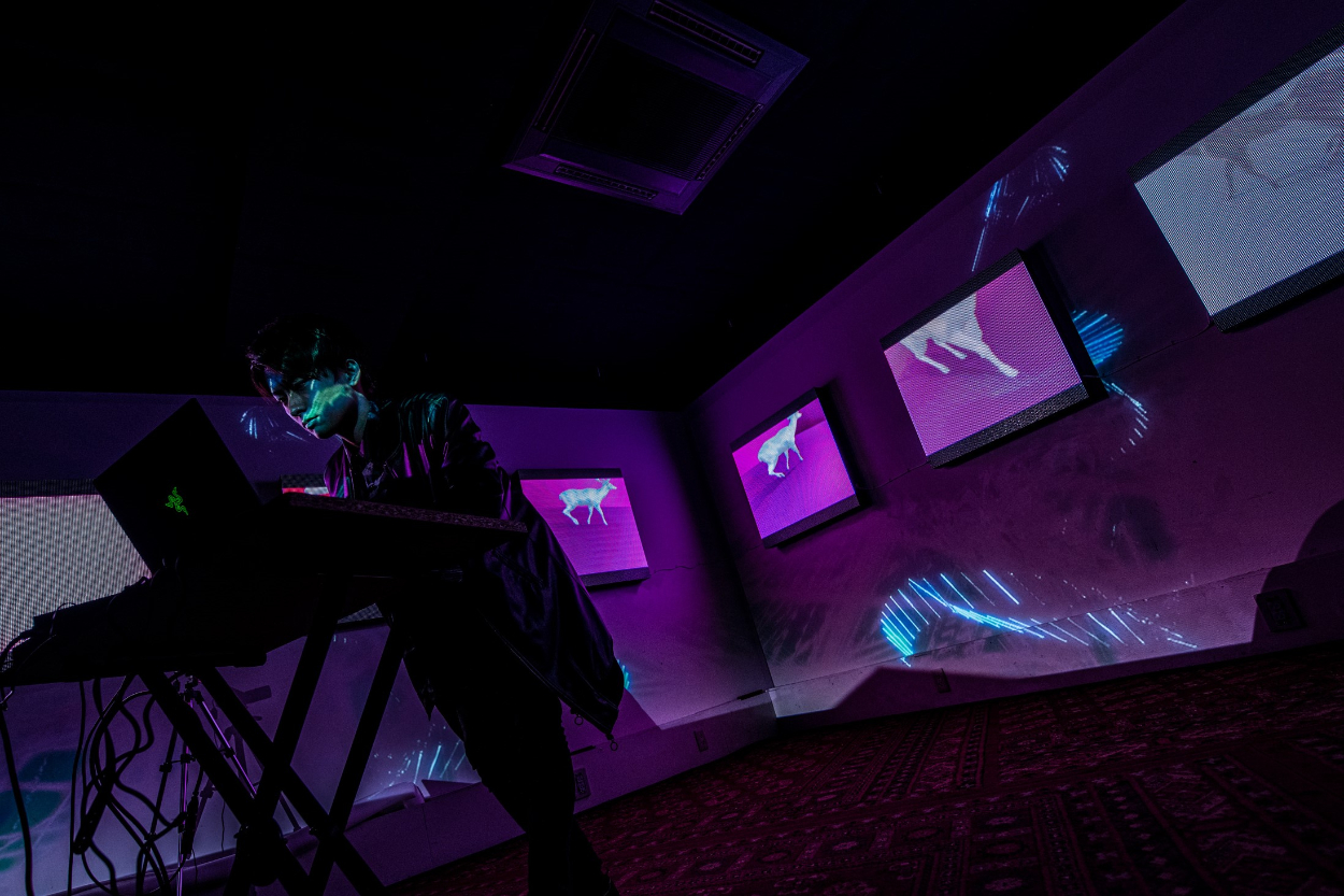 最終日には吉祥寺NEPOにてVJパフォーマンスの場を設けていただきました。6台のLEDパネルとプロジェクターという特殊な設計に合わせて映像制作、演出を考えました。