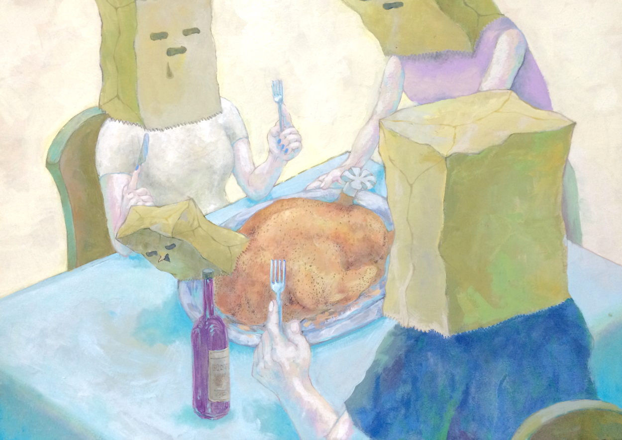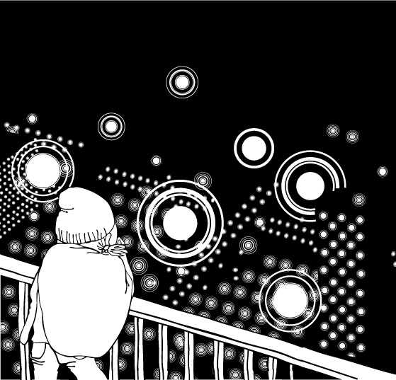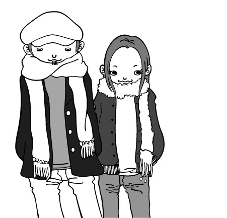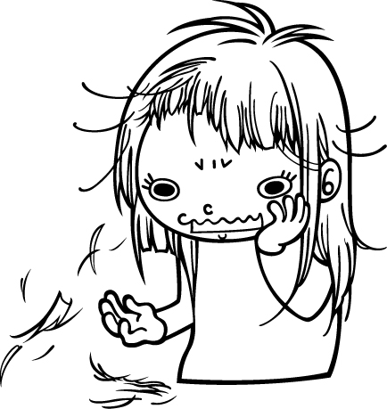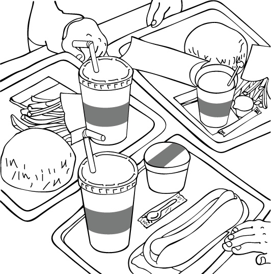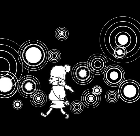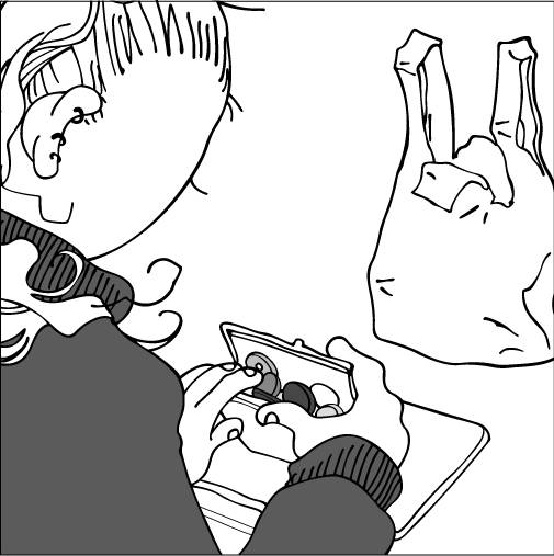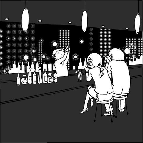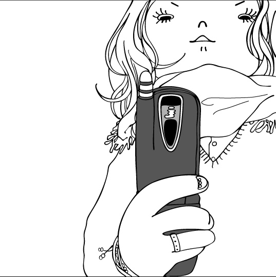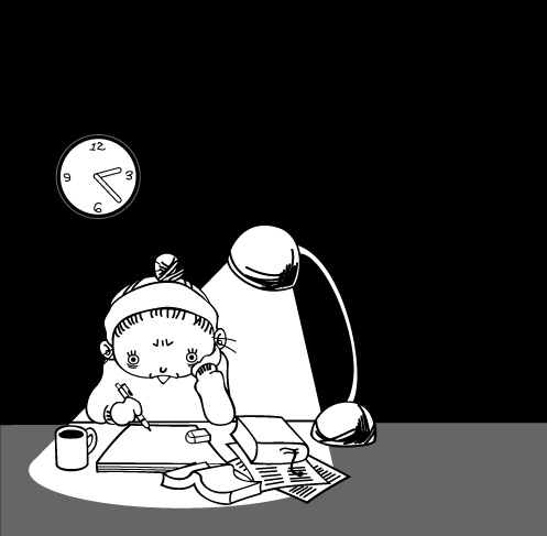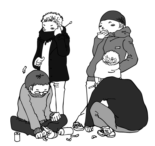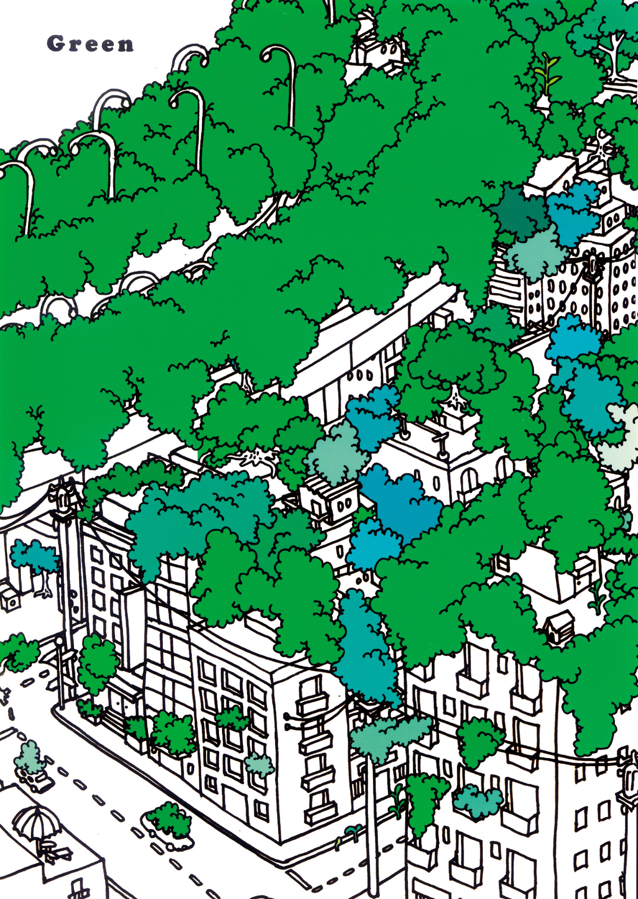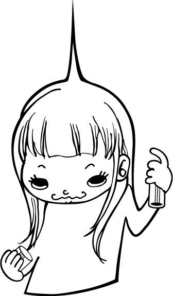 当時は、マンガやアニメのような均一な線幅の輪郭線でイラストレーションを描きたいと考えていました。まずイメージに合う太さのボールペンで下絵を描き、デジタルデータにして制作していました。