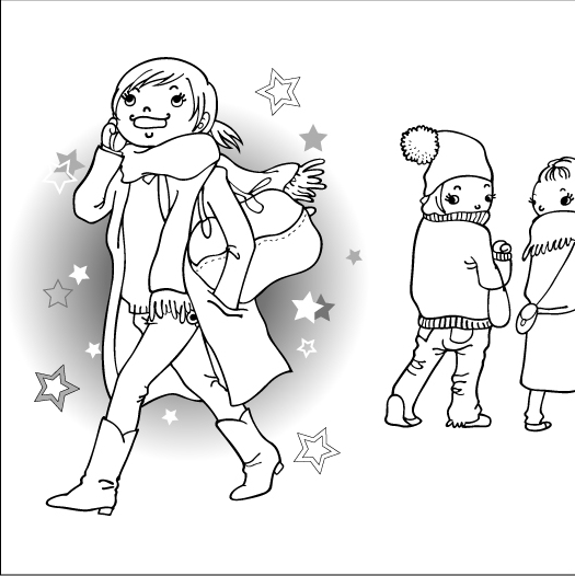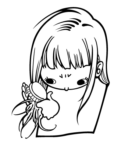 また、彩色をする事を考え、Illustratorのベジェ曲線で輪郭線をトレースして制作しました。