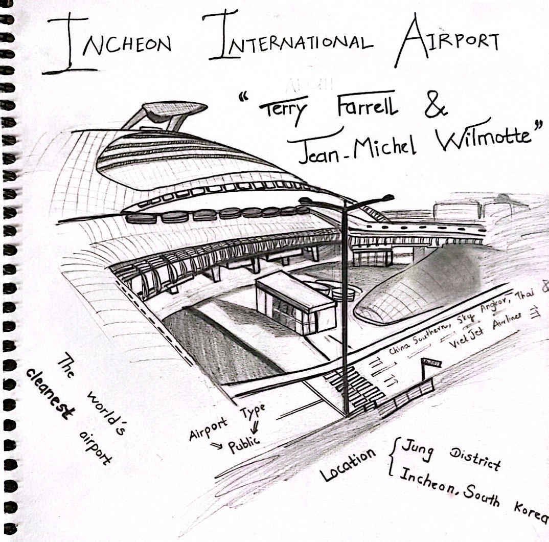これは大学時代に描いた建物のスケッチや、空き時間に描いた絵のサンプルです。好きな建物のデザインを、定規を使わず鉛筆だけでスケッチしながら独学で学びました。カラーの作品は、色の使い方を学ぶための学校のプロジェクトで制作したものです。