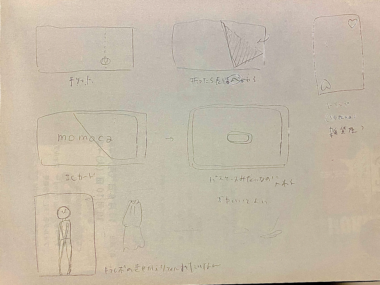 課題の内容が名刺サイズのプロモーションカードだったので、カードの形で面白いものを考えたいと思い、ICカード風のものを製作することに決まりました。