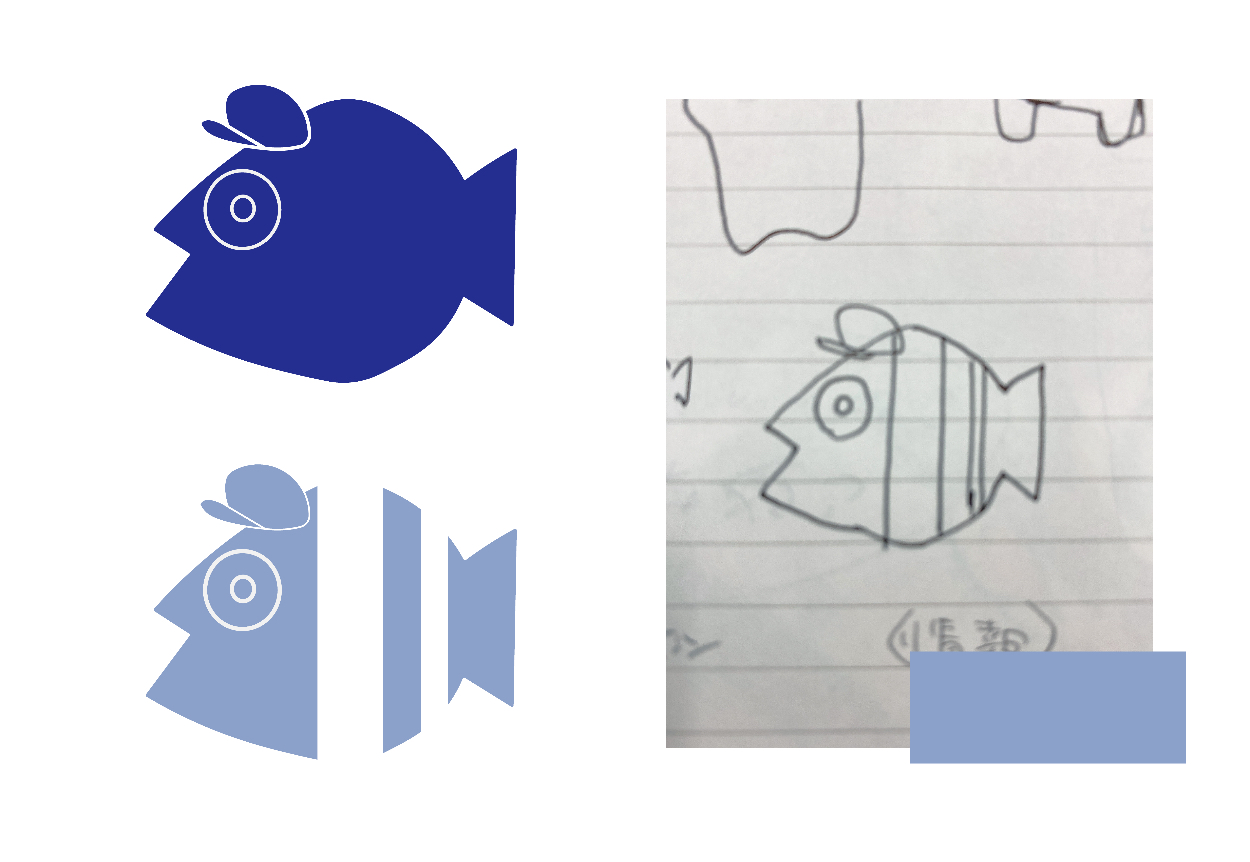 ICカードのキャラは海中鉄道、ということもあってエンゼルフィッシュをモチーフにした駅員「さかなちゃん」を製作、本物のICカードを見ながら裏面も製作しました。