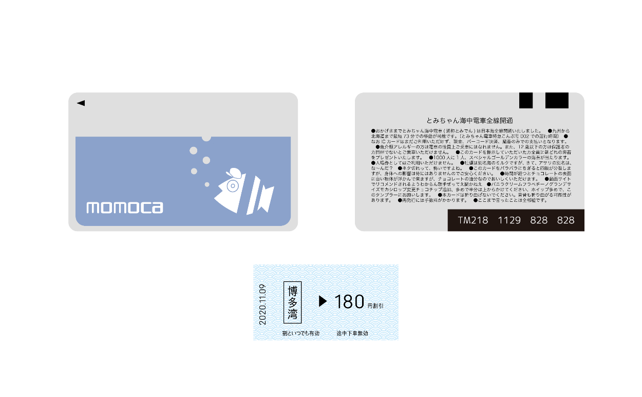 企業のプロモーションツール製作の課題で仮想の海中鉄道を想定したICカード風のプロモーションツール「MOMOCA」を製作しました。