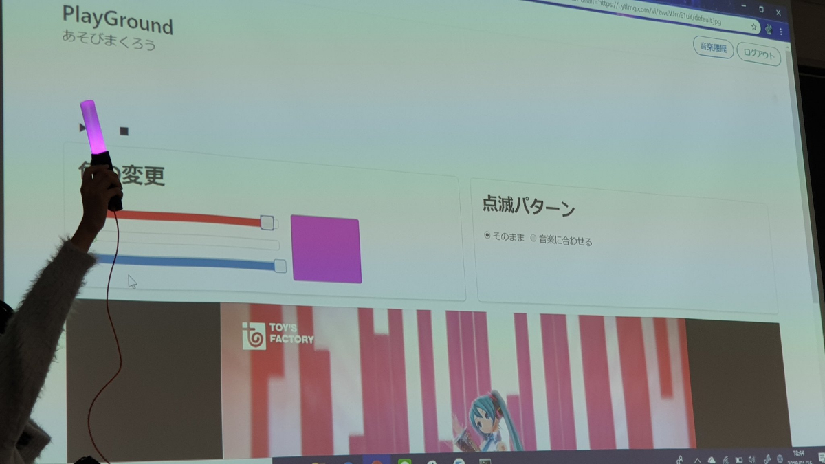 本システムは、利用者の音楽鑑賞をより楽しいものにしてもらうことを目的としている。利用者が、音楽鑑賞時に「もっと気分を上げたい」「いつもと違う音楽鑑賞をしたい」と思ったときの利用を想定している。本サービスの長所は、Web で自由にペンライトを制御でき、Songleに登録されている約 130 万曲(2019 年 1 月現在)もの楽曲に対応できるようになっているところである。