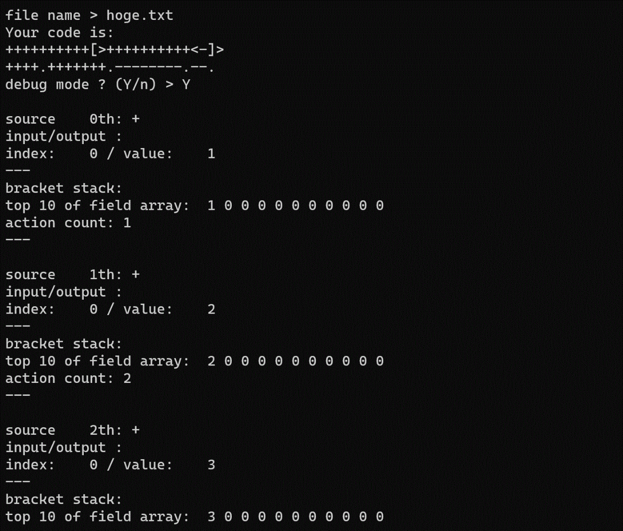 デバッグモードという、コマンドの結果を1つづ表示するモードを搭載しています。