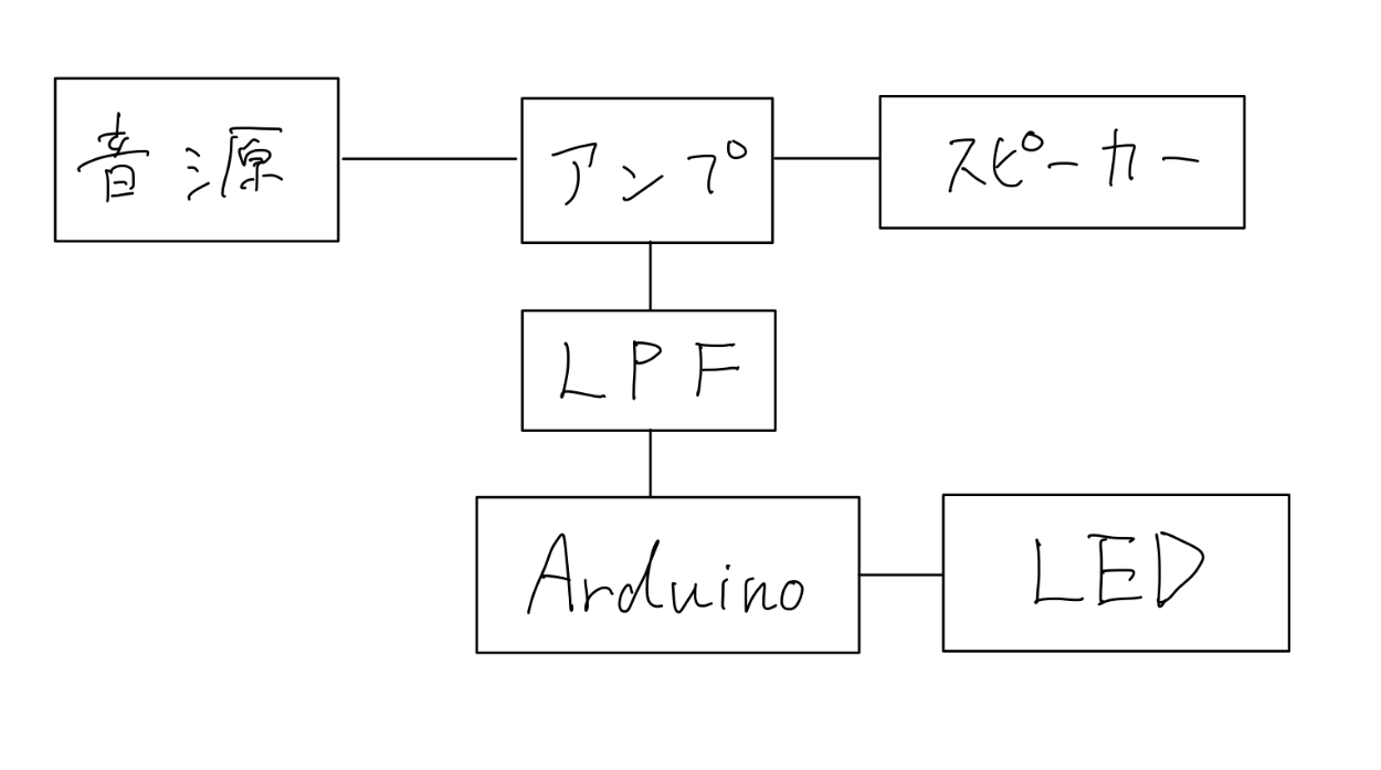 アンプからの音波にノイズ除去のためコンデンサを用いたローパスフィルタを実装し,周波数帯域を5段階,各周波数帯の大きさを6段階に分割した。