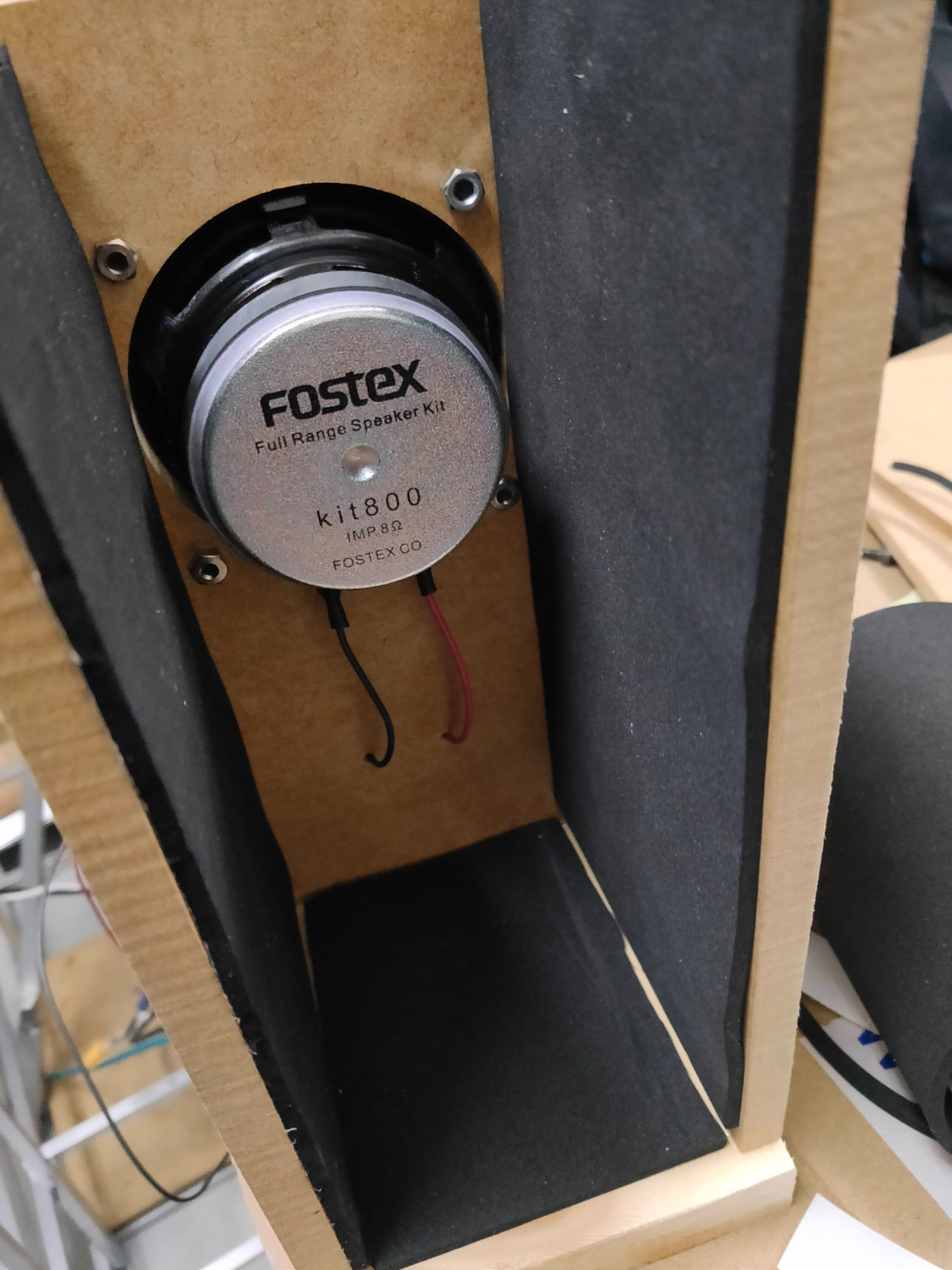 エンクロージャーを3DCADで設計し,MDF素材で作製。内面には吸音材となるスポンジを敷き詰める。スピーカーにはFostexのKit800を使用。