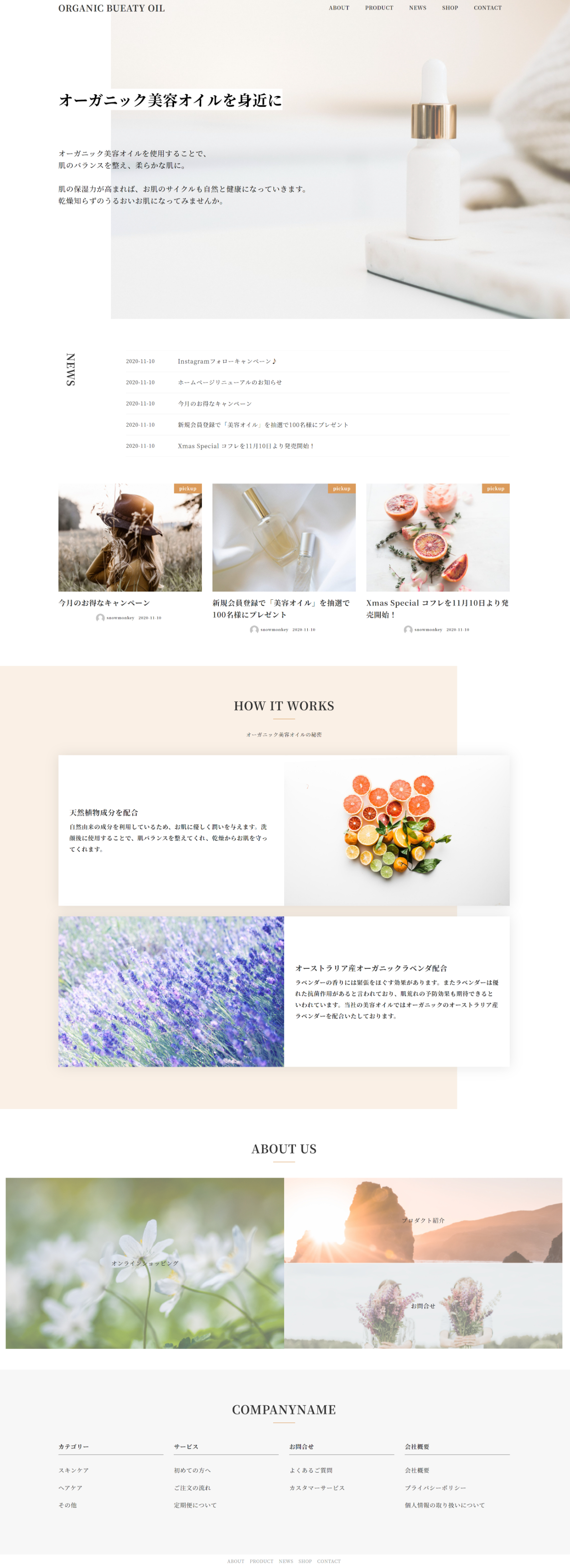 WordPressにて自主制作として、オーガニック化粧品会社のHPを制作いたしました。