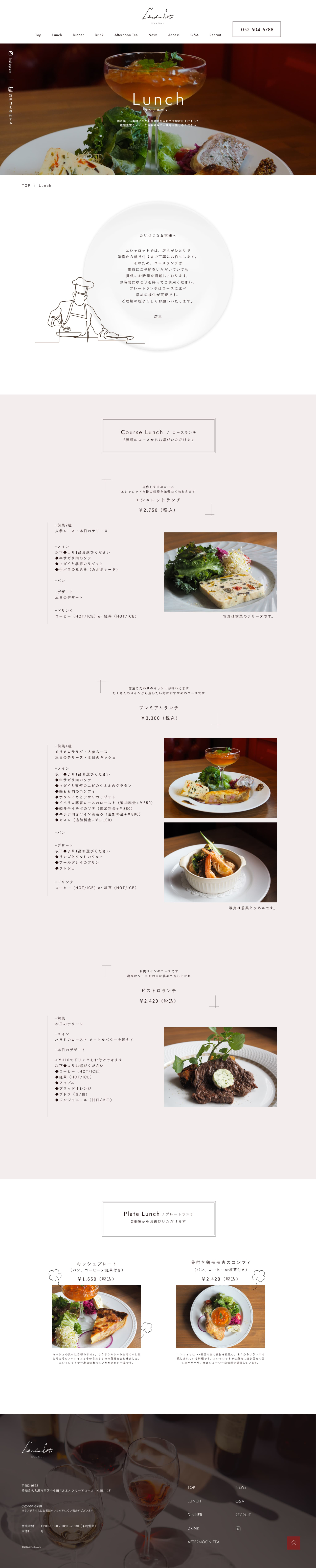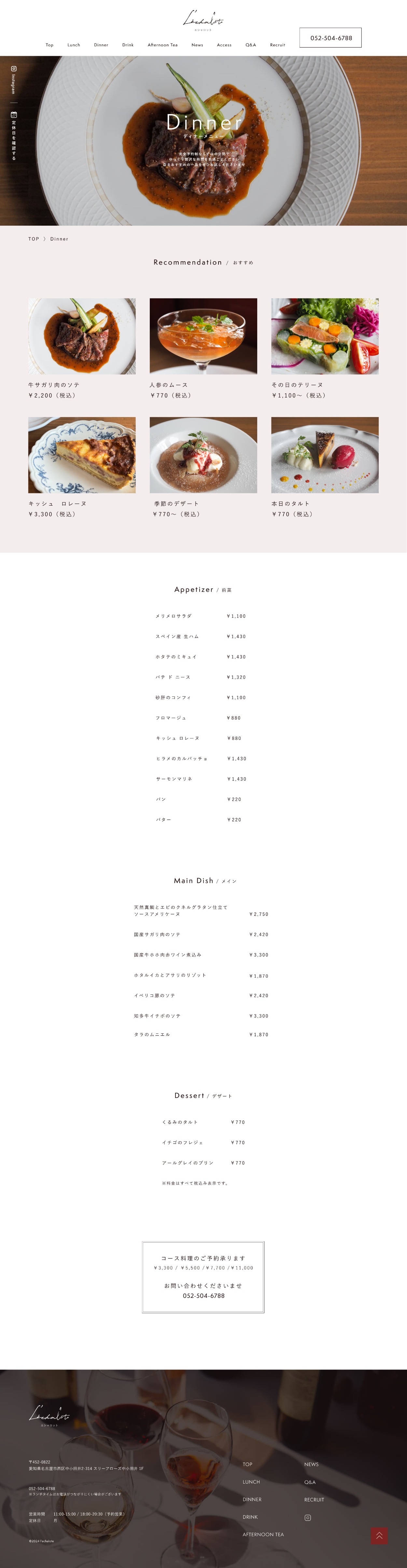 ディナーでの利用が連想できるビジュアルを意識して全体のサイトデザインをしました。