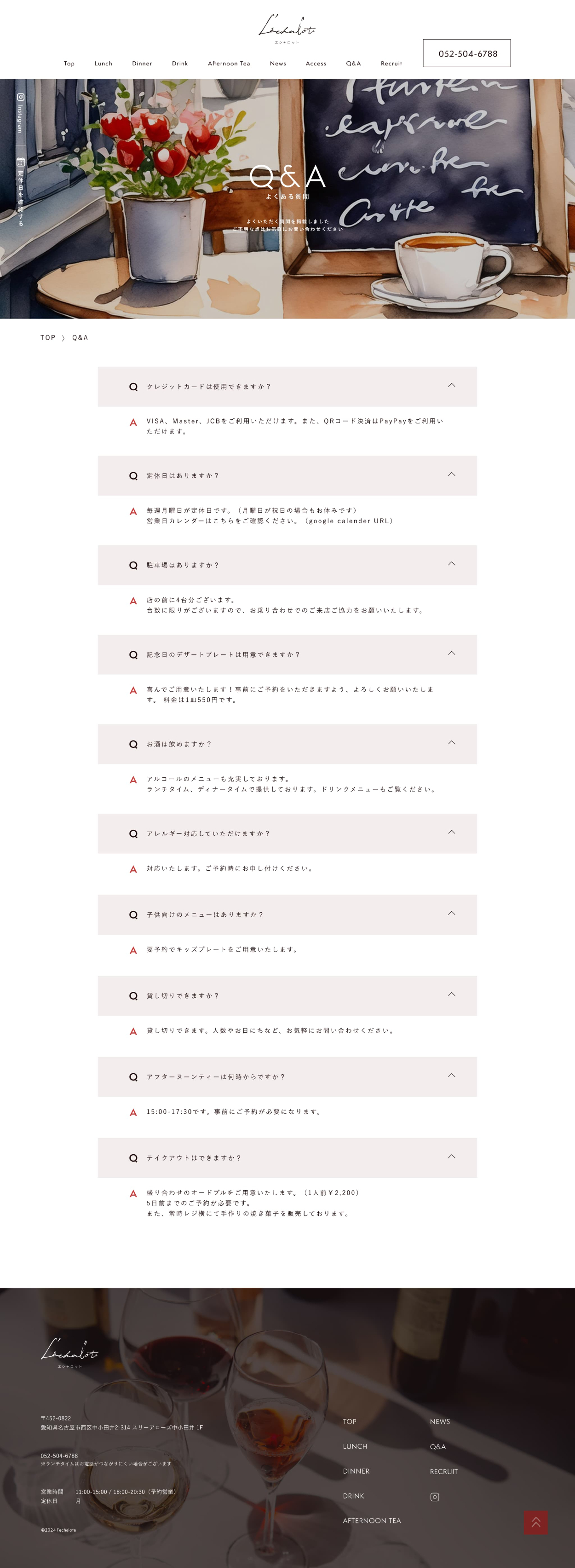 飲食店には珍しい、よくある質問ページ(Q&A)を作成することで1人で店を切り盛りする店主の負担を減らせるようにしました。また、電話で問い合わせることが苦手な人の予約も取り込む狙いがあります。