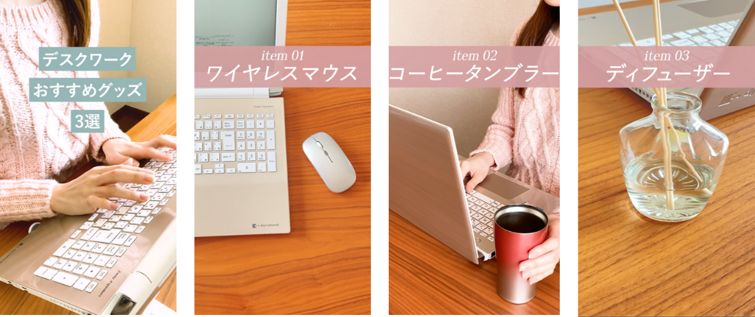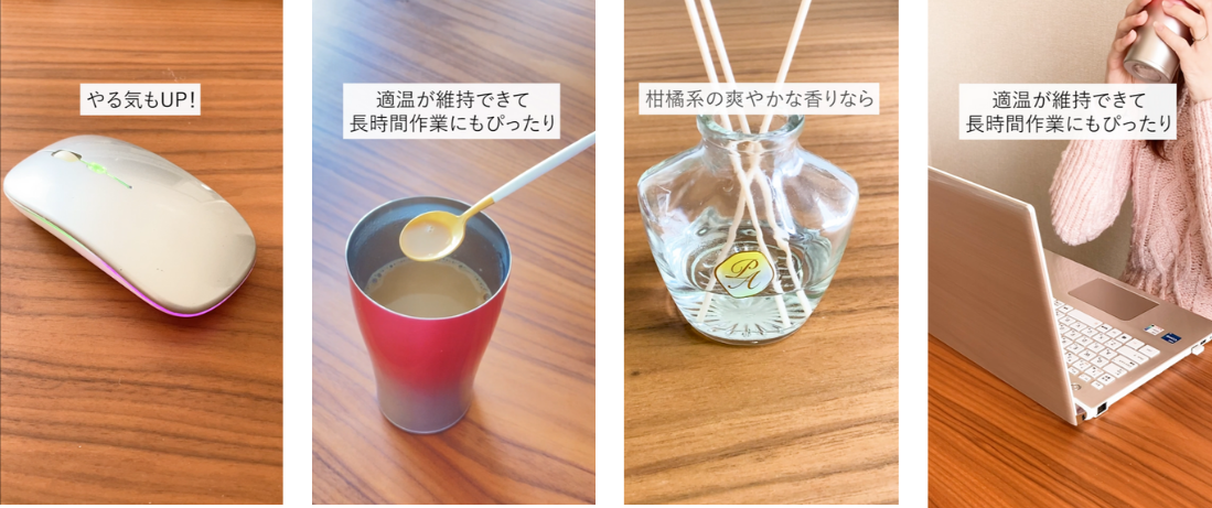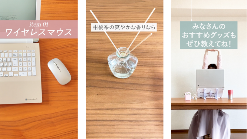 - 実際に取り入れやすく、かつ、動画を見るだけでモチベーションが上がるような色味のグッズを選択