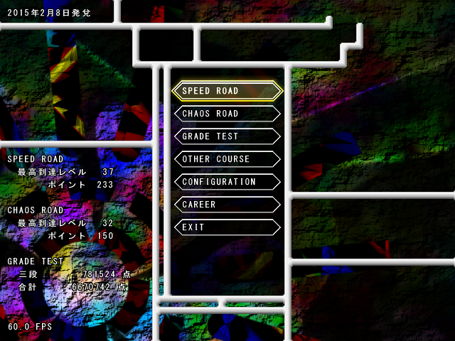 速さを極める「SPEED ROAD」モード、様々な妨害を克服する「CHAOS ROAD」モード、段位認定の「GRADE TEST」モード、ユーザーが独自に作ったコースをプレイできる「OTHER COURSE」モードがあります。