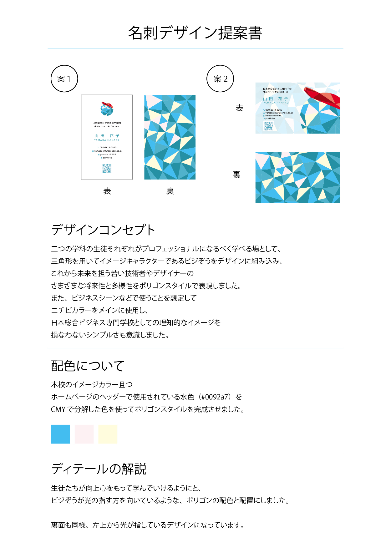 日本総合ビジネス専門学校 学内名刺コンペ 入選