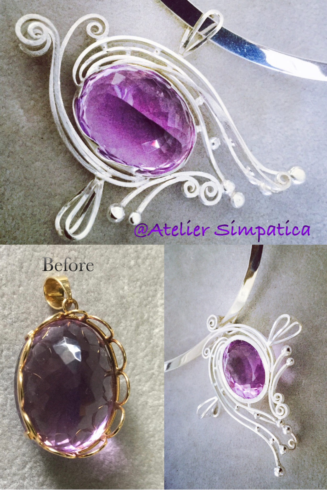 [Remake Order] Simpatica.rie Jewelry Artist OVERVIEW リメイクオーダー K18枠アメシストチャーム→2way仕様のペンダントへルースの裏側も活かせるようにデザインしました!