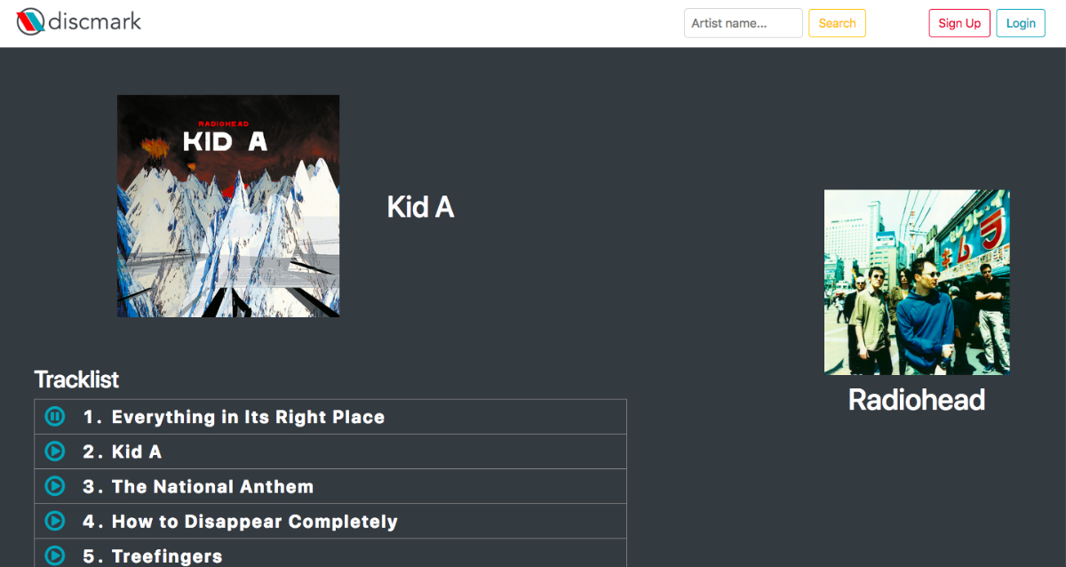 Discmark Kosuke Yamashita Frontend Engineer OVERVIEW 仮想音楽ストリーミングサービス iTunes API と last.fm APIを使用しよりディープな音楽探索ができます。 YEAR 2017 Githubにて詳細、コード等公開しておりますのでご覧くださいませ。 → Github WEBSITE
