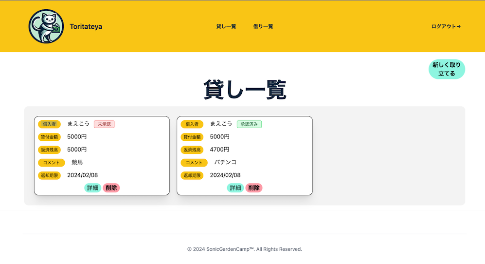 株式会社ソニックガーデンが提供している『ソニックガーデンキャンプ』に参加したときに、初めてのチーム開発で作成したサービスです。チームメンバーには色々教えてもらい、本当に感謝しています。