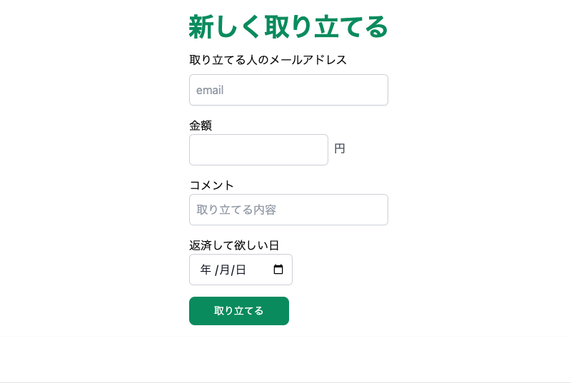 新たに取り立てる場合には、サインアップが完了している相手のメールアドレスを入力することで取り立てることができます。また、本当に貸したかどうかを承認する機能がついており、承認用のメールが相手に自動送信されます。