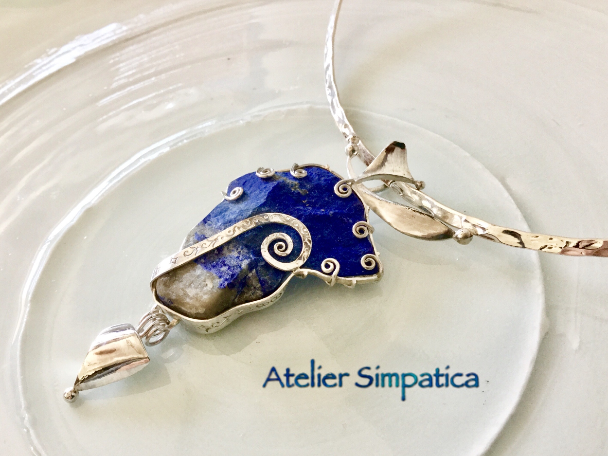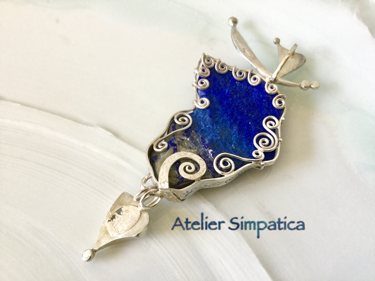 [LAPIS LAZULI PENDANT TOPS ❶] Simpatica.rie Jewelry Artist OVERVIEW ラピスラズリ原石 YEAR 2016 原石:約20mm×30mm ランダム形カット石枠裏原石のままのカタチを生かしためずらしい作品