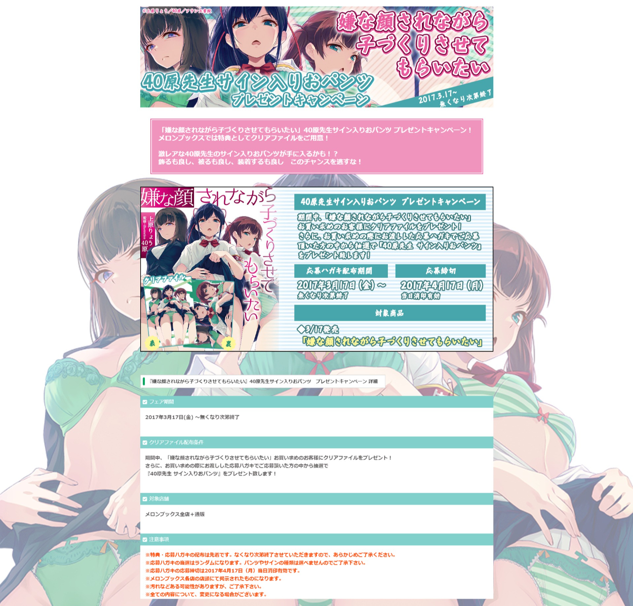 「嫌な顔されながらおパンツ見せてもらいたい」サイン会特設 knitor Webデザイナー、フロントエンドエンジニア OVERVIEW 「嫌な顔されながらおパンツ見せてもらいたい」サイン会特設のデザイン、コーディングを担当しました。 YEAR 2017 「嫌な顔されながらおパンツ見せてもらいたい」サイン会特設のデザイン、コーディングを担当しました。