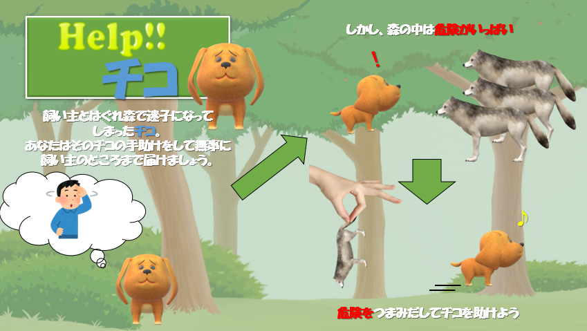飼い主とはぐれてしまったチコを無事に飼い主のところまで届けるゲームとなっております。