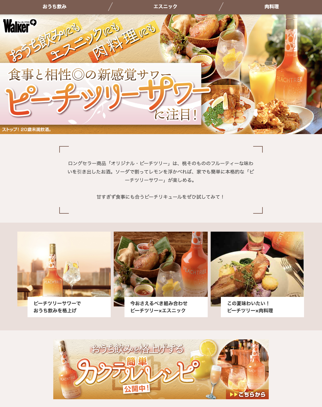 【キービジュアル】ピーチツリーサワー(キリンビバレッジ株式会社様 株式会社KADOKAWA様) 藤原奏人/Kanato Fujiwara ventus Inc. Design Lead OVERVIEW ロングセラー商品「オリジナル・ピーチツリー」を美味しく楽しむための工夫やレシピなどを紹介する特設サイトのキービジュアル制作を担当しました。 YEAR 2019 WEBSITE