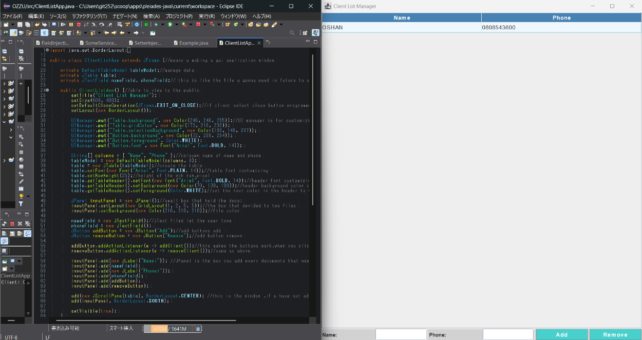 ユーザーは、名前と電話番号を入力して、クライアントの情報を追加または削除できます。