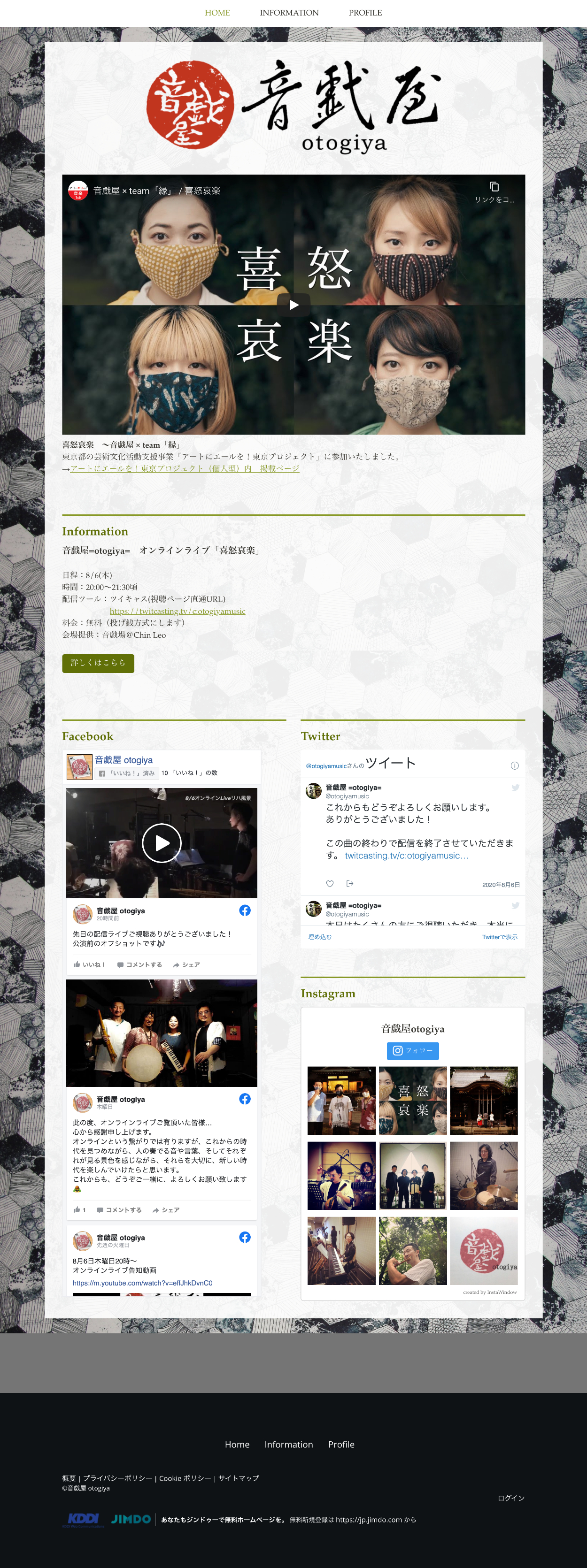 音楽バンドのWEBサイト。ライブ告知に間に合うようにとのご依頼を受け、短期間で制作しました。