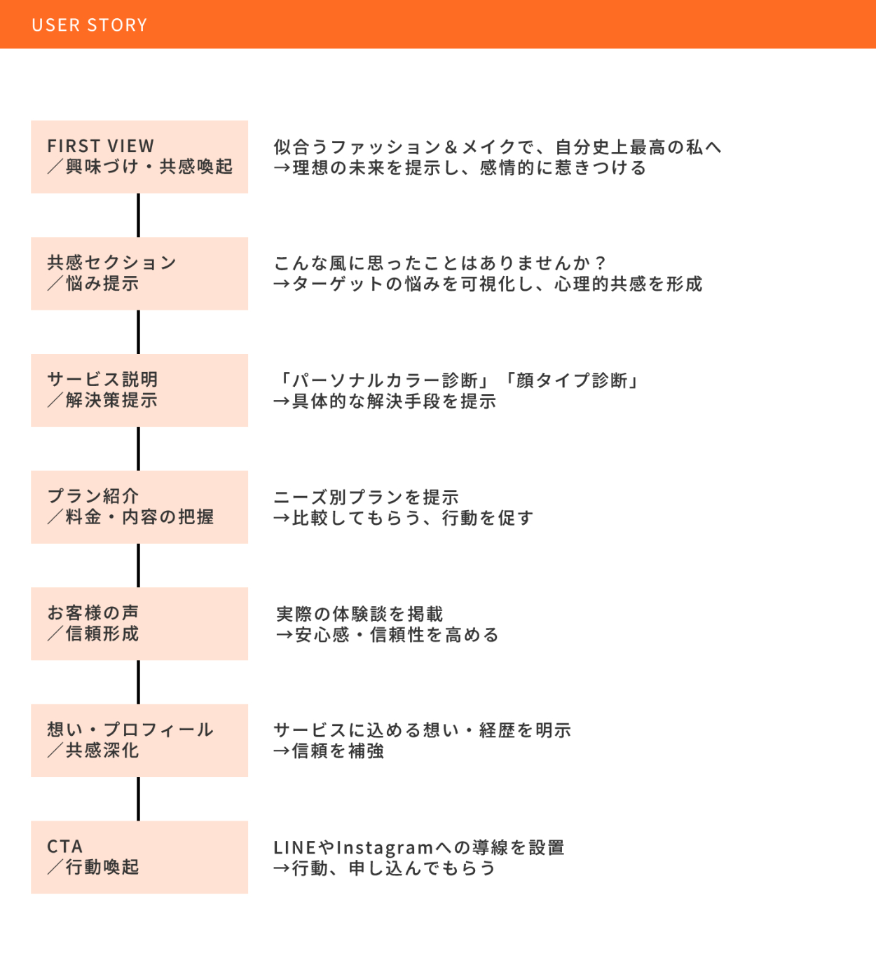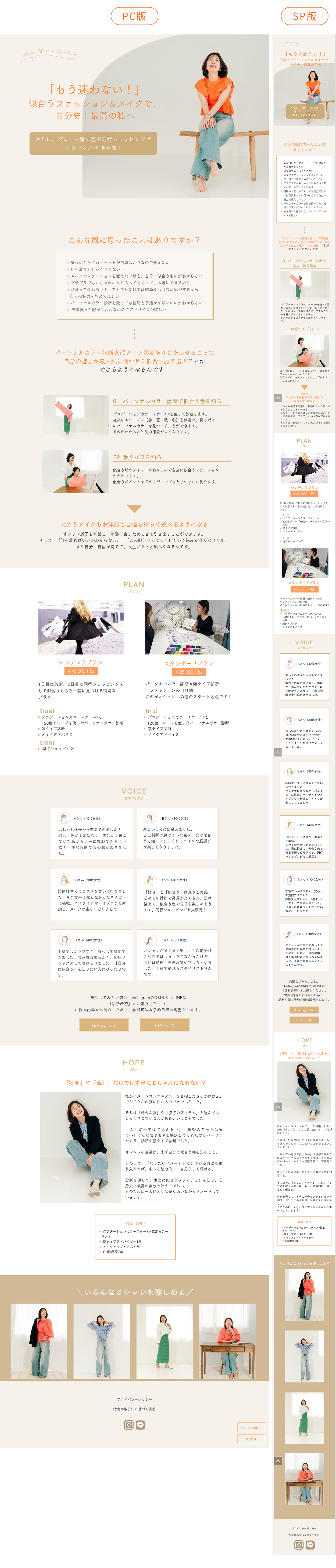 実案件、「自分に似合うファッションやメイクを知りたい女性」に向けたパーソナル診断サービスの紹介のLPサイトを制作しました。